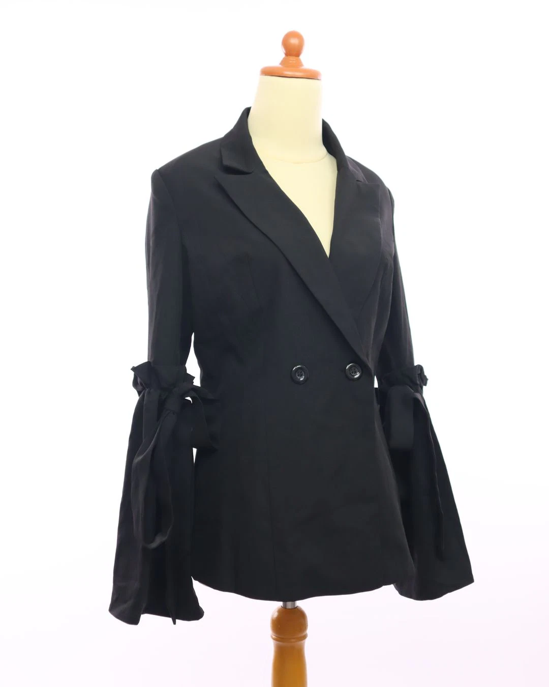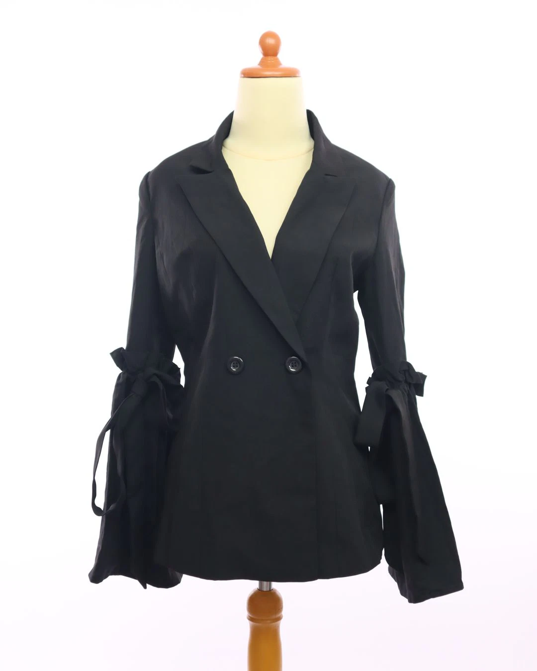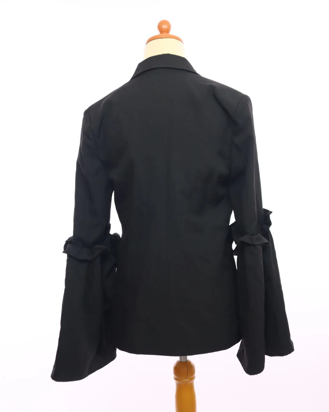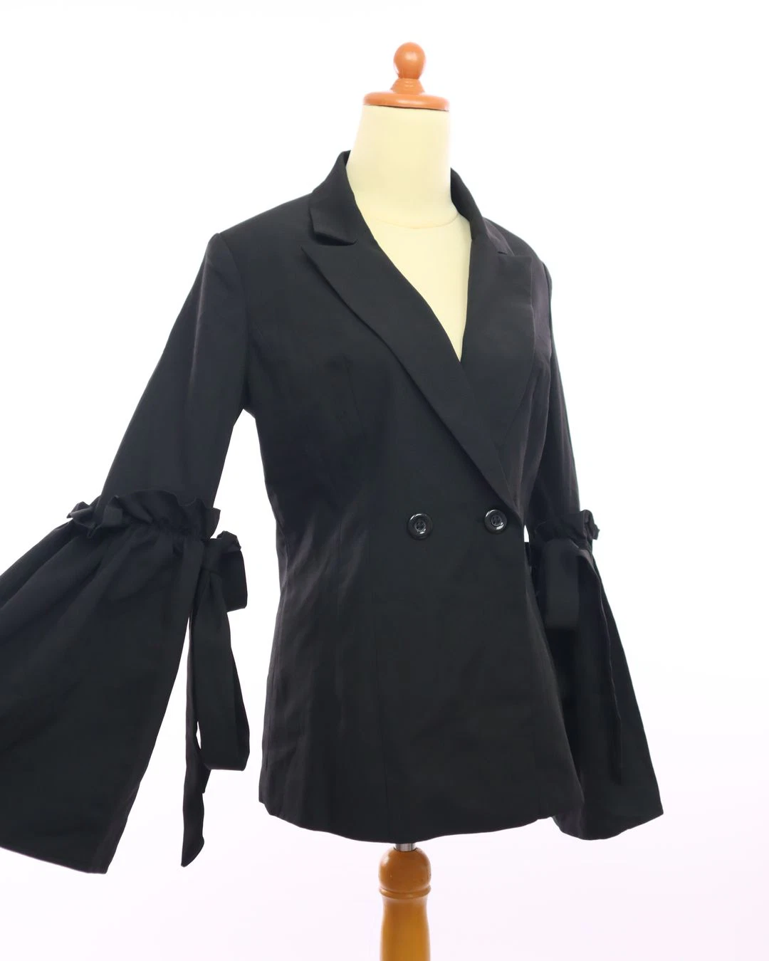 button ruffle tie sleeve blazer