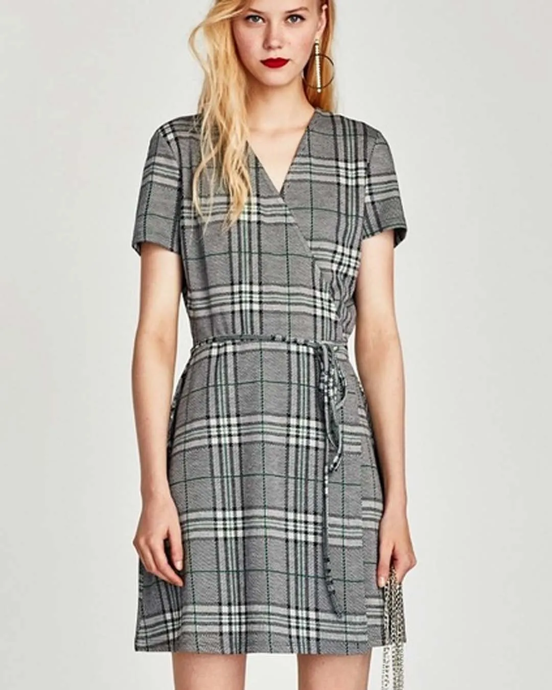 checkered wrap dress