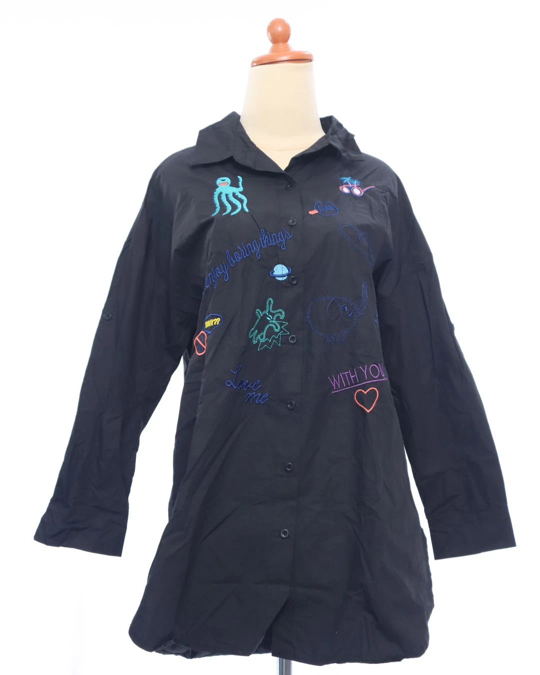 embroidery button down sleeve top