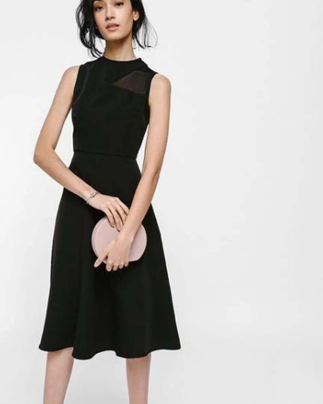 mesh detail A-line midi dress