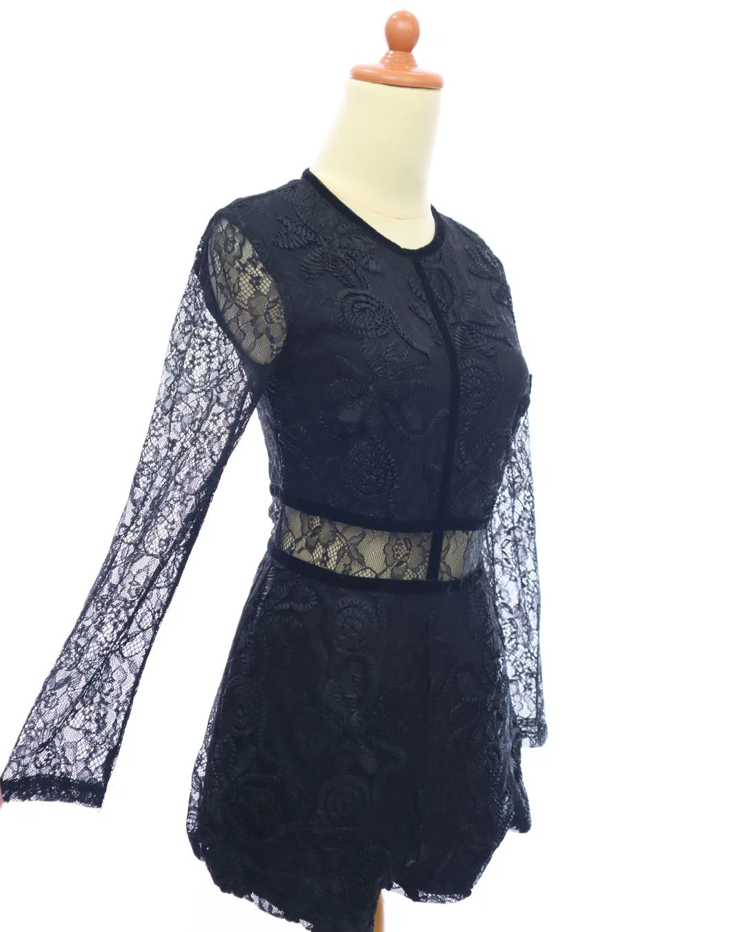 Petite embroidery lace sleeve elegant romper