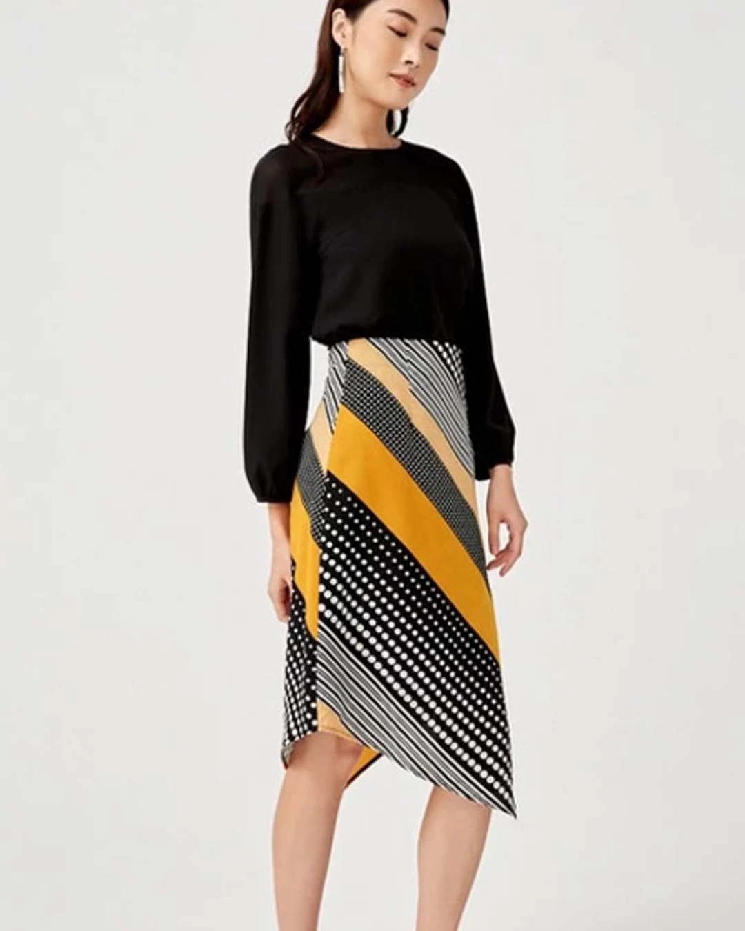 polka print asym skirt